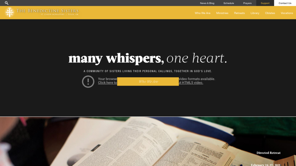 We are Catholic Benedictine women, committed to the Gospel of Jesus Christ, which impels us to love as he loves, through a common life of prayer, hospitality and ministry.