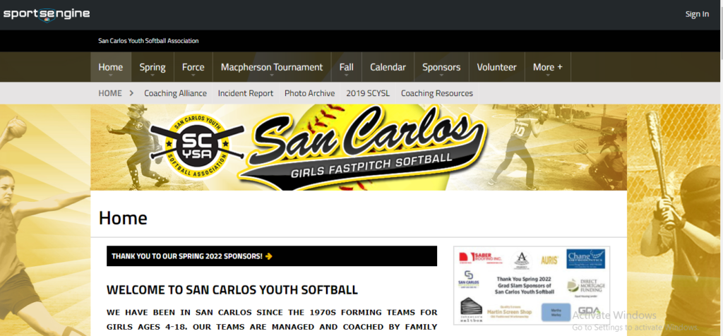 The San Carlos Youth Softball Association (SCYSA) offers recreational and competitive fastpitch softball for girls and young women in San Carlos and surrounding communities. The organization was founded in the 1970s as part of Bobby Sox softball and took on its current name in 1989 when it joined the American Softball Association (ASA). In 1990, SCYSA held its first summer tournament, and in 2000 named the tournament in honor of Jan Macpherson, one of the pioneering leaders of the league.
