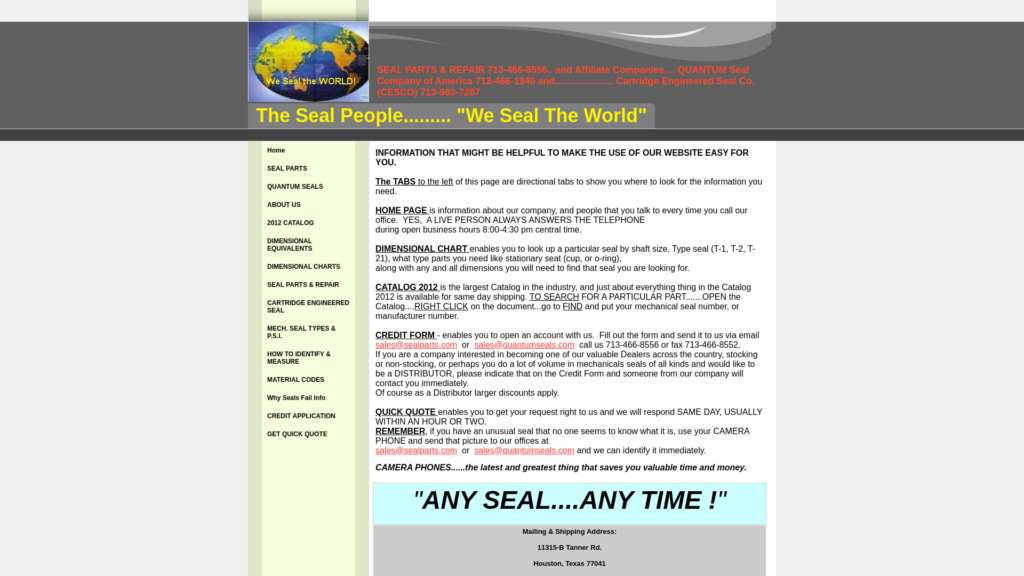 SEAL PARTS & REPAIR 713-466-8556.. and Affiliate Companies.... QUANTUM Seal Company of America 713-466-1940 and...................... Cartridge Engineered Seal Co. (CESCO) 713-983-7267