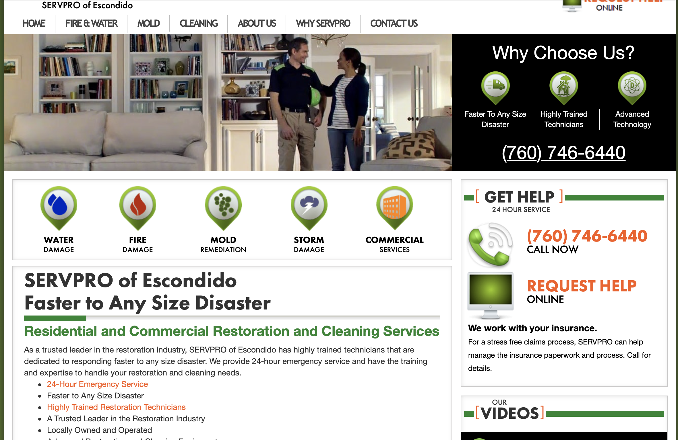 SERVPRO of Escondido Professionals are available 24 hours/7 days a week and will respond quickly to a restoration emergency, whether it is water, fire or mold. Call today - (760) 746-6440.