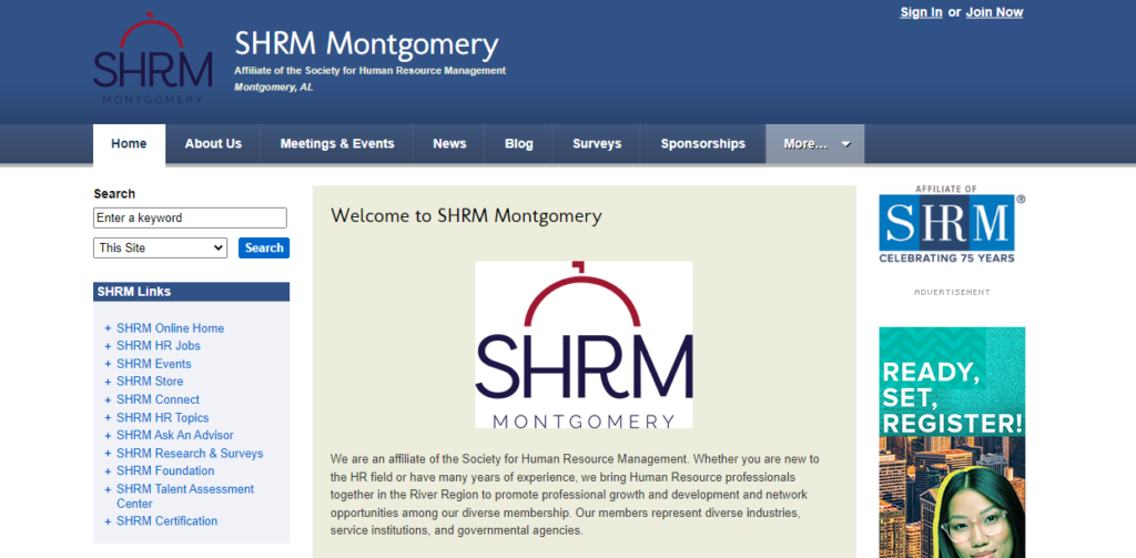 SHRM-Montgomery is an organization of professionals from diverse industries and service institutions, public and private, as well as government, both state and federal, who are interested in or engaged in human resources management, personnel administration, industrial relations, education or training and development.
