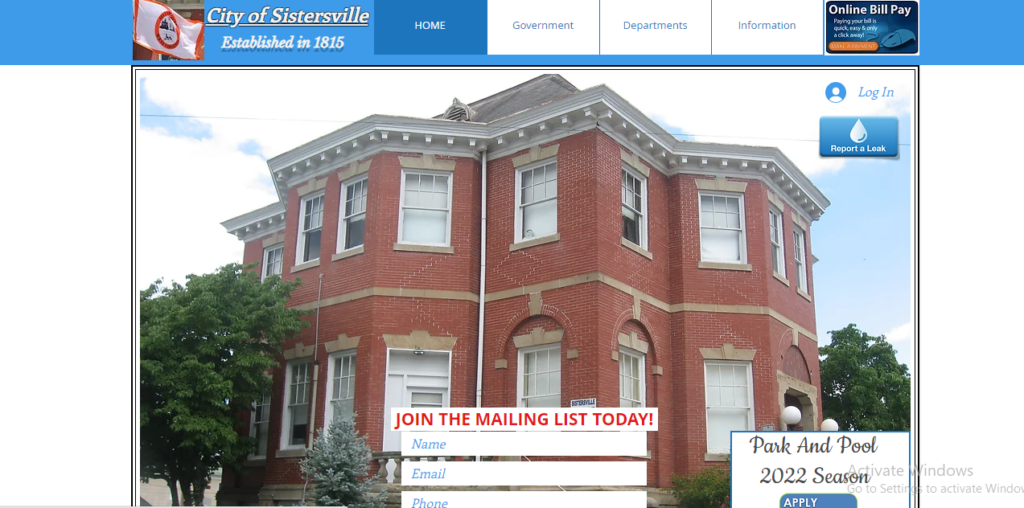 Home » Listings » Sistersville Water Department December 6, 2022 Sistersville Water Department Civic City of Sistersville Established in 1815 Add to favourites Report abuse Contact details http://cityofsistersville.com WHOIS Created on: 01/28/2020, 20:20PM Last Updated on: 12/29/2025, 15:25PM Expires on: 01/28/2028, 20:20PM Registrant: Organization: City of Sistersville State: CA Country: UNITED STATES Country Code: US Domain Name: cityofsistersville.com Name Servers: Host Names: ns5.wixdns.net, ns4.wixdns.net Audit: Created on: 03/19/2026, 16:34PM Last Updated on: 03/19/2026, 16:34PM Registrar: Wix.Com Ltd. Registrar IANAID: 3817 WHOIS Server: whois.wix.com Contact Email: cityofsistersville.com@wix-domains.com