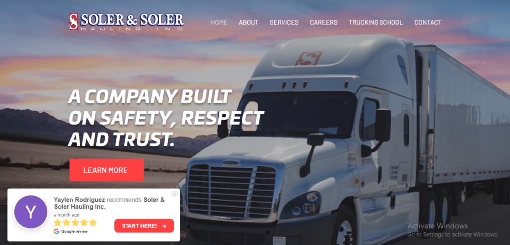Today Soler & Soler Hauling has continued to grow with 22 new units (2019-2020-2021) and the launch of Soler & Soler’s first CDL Trucking School located in Miami, FL. As our company continues moving forward, we remain committed to the core values that have brought us this far, putting our customers’ needs first, training and mentoring new drivers, and overall, complying with the DOT and Federal Laws.