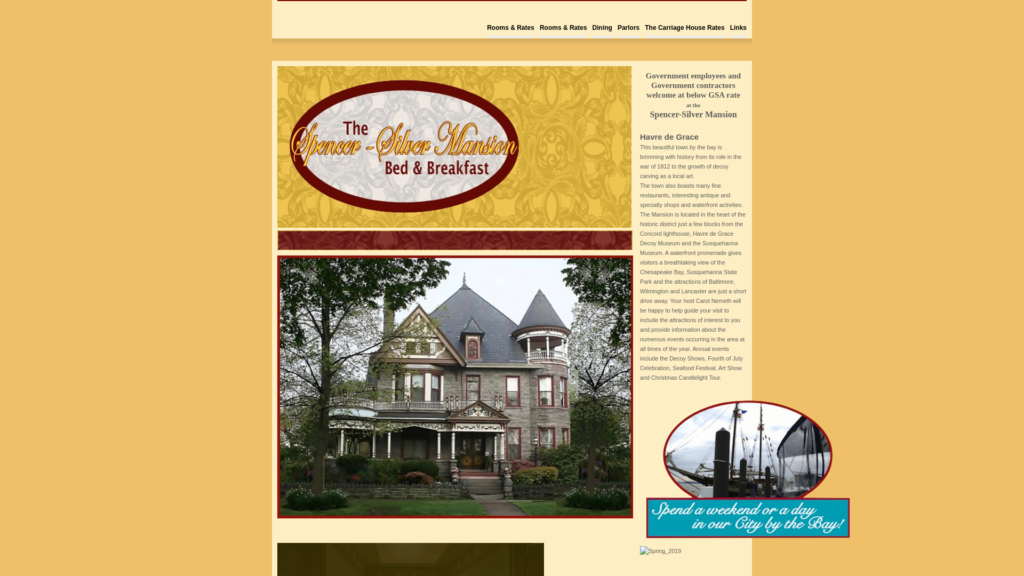 bed and breakfast spencer silver mansion, chesapeake bay bed and breakfast, antiques, sailing, boating, duck carving, restaurants, harve de gracde Maryland