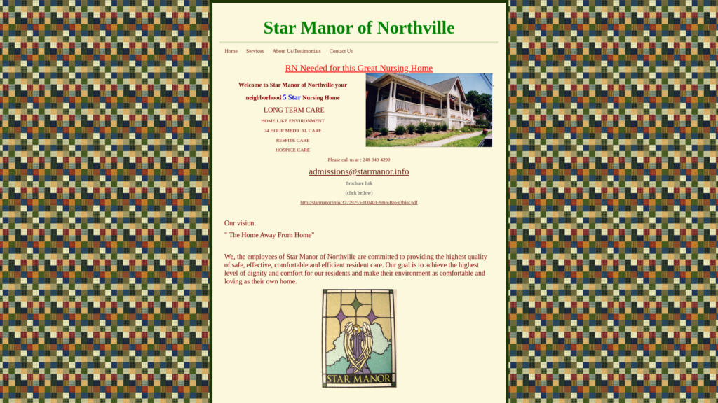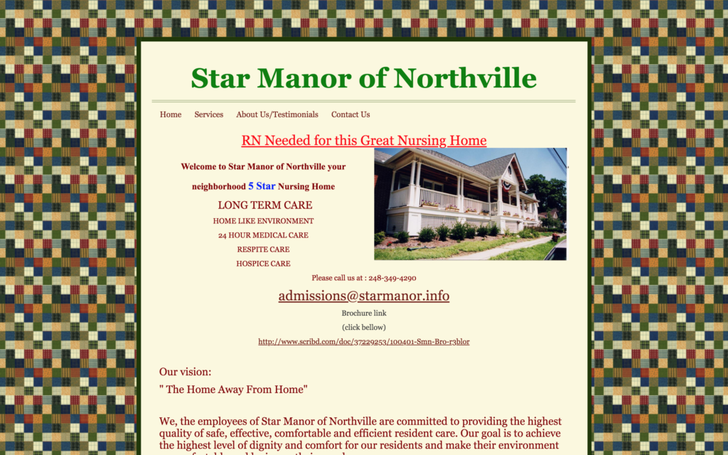 We, the employees of Star Manor of Northville are committed to providing the highest quality of safe, effective, comfortable, and efficient resident care. Our goal is to achieve the highest level of dignity and comfort for our residents and make their environment as comfortable and loving as their own home.
