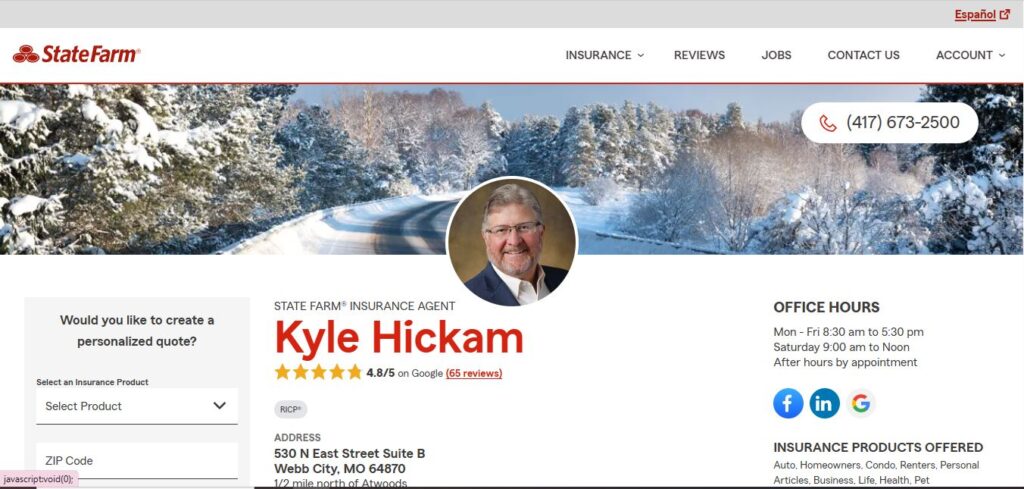 My team of Licensed Insurance Professionals are here to help get you Insurance coverage for your specific needs. From safe driving rewards, bundling options and discounts, our team at Kyle Hickam’s is here to help you create a solution that’s right for you. Not only can we help with Auto Insurance, Homeowner’s Insurance, Renter’s Insurance, Condo Insurance, Life Insurance and Financial Services, but we are also able to assist small business owners with their Commercial lines of Insurance. Did I mention we also offer Boat Insurance, Liability Insurance, Health Insurance and more! We even offer Free Auto Insurance Quotes! Stop by the office today for a personal price plan in Webb City!