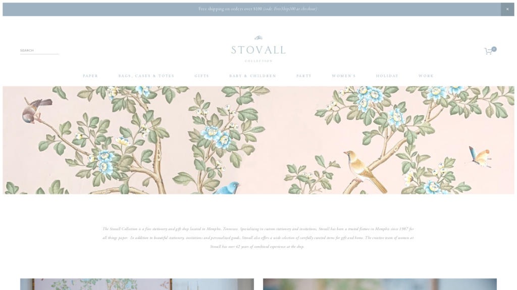 The Stovall Collection is a fine stationery and gift shop located in Memphis, Tennessee. Specializing in custom stationery and invitations, Stovall has been a trusted fixture in Memphis since 1987 for all things paper. In addition to beautiful stationery, invitations and personalized goods, Stovall also offers a wide selection of carefully curated items for gift and home. The creative team of women at Stovall has over 42 years of combined experience at the shop.