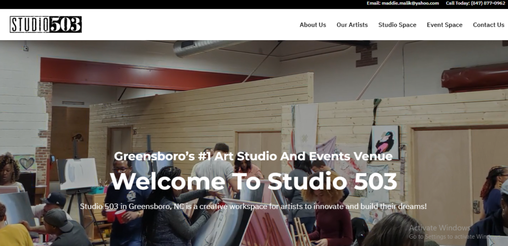 Studio 503 is a 22,000 square foot collaborative work space where artists come together to create, realize their dreams, and be inspired. Once an industrial property, Studio 503 now offers a collegial work area and 16 affordable private studios just a short five block walk from lively Elm Street in downtown Greensboro. Located across the street from Bailey Village, and next door to Rhythm Works, Studio 503 is an important part of the emerging and dynamic transformation happening in Downtown East.