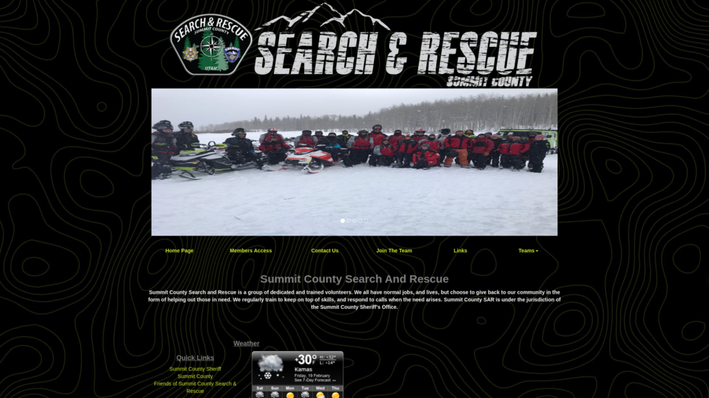 Summit County Search and Rescue is a group of dedicated and trained volunteers. We all have normal jobs, and lives, but choose to give back to our community in the form of helping out those in need. We regularly train to keep on top of our skills and respond to calls when the need arises. Summit County SAR is under the jurisdiction of the Summit County Sheriff’s Office.