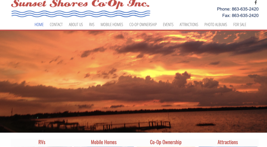 Formerly called Sugar Sands Mobile Home Park, Sunset Shores became a resident-owned co-operative in 2008, allowing the residents the option of becoming a part-owner in the park.