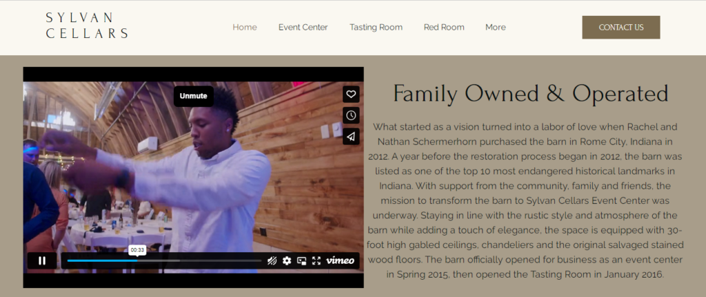 What started as a vision turned into a labor of love when Rachel and Nathan Schermerhorn purchased the barn in Rome City, Indiana in 2012. A year before the restoration process began in 2012, the barn was listed as one of the top 10 most endangered historical landmarks in Indiana. With support from the community, family and friends, the mission to transform the barn to Sylvan Cellars Event Center was underway. Staying in line with the rustic style and atmosphere of the barn while adding a touch of elegance, the space is equipped with 30-foot high gabled ceilings, chandeliers and the original salvaged stained wood floors. The barn officially opened for business as an event center in Spring 2015, then opened the Tasting Room in January 2016.