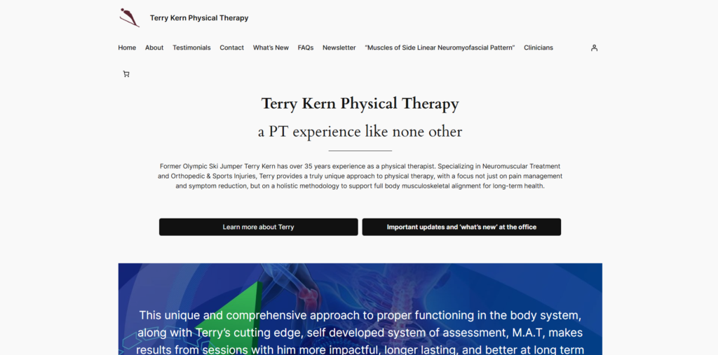 The sport of ski jumping led Terry directly into his physical therapist career as a result of being a patient; going through surgery and rehabilitation on both shoulders and a knee. Graduating with honors in 1982 from the College of St. Scholastica located in his hometown, Terry now has over 40 years experience as a physical therapist/rehabilitation specialist in New Mexico. He specializes in myofascial and neuromyofascial treatment, orthopedic and sports injury rehabilitation, and exercise and education programs, with the goal of altering “functional integrated fascial and isolated neuromyofascial patterns” and optimum, normal function. In short, altering “myomemory.” He has developed his own technique, “Myomemory Advantage Transformation or M.A.T.,” an approach that involves optimum skeletal posture and movement, analysis, balance, and treatment of acute and chronic musculoskeletal pain. His technique incorporates the best of other physical therapy and alternative medicine philosophies, using their ideas in a new and innovative manner as it applies to laws of physics and your body.