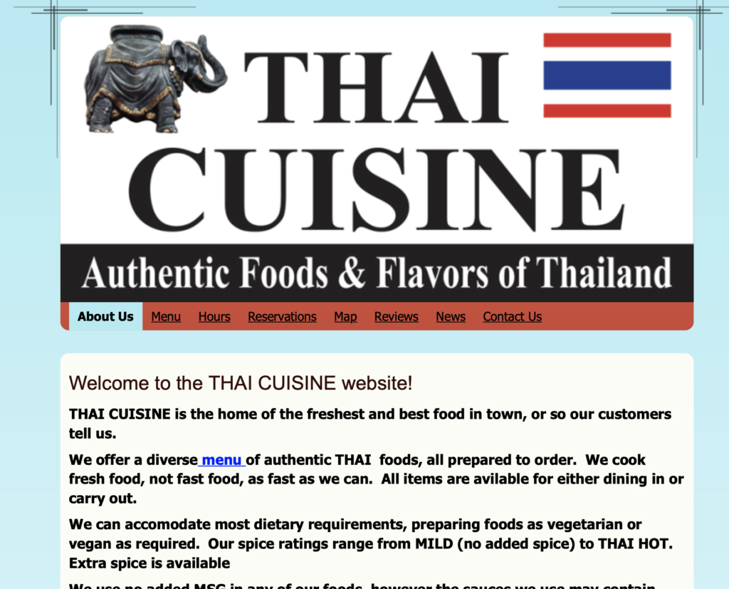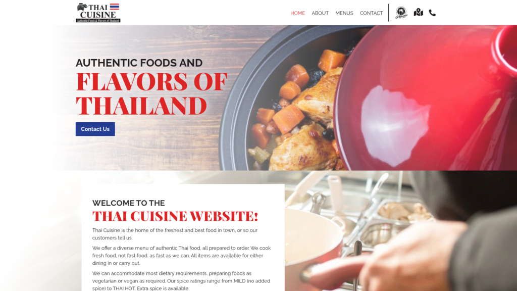 We offer a diverse menu of authentic THAI foods, all prepared to order. We cook fresh food, not fast food, as fast as we can. All items are available for either dining in or carry out.