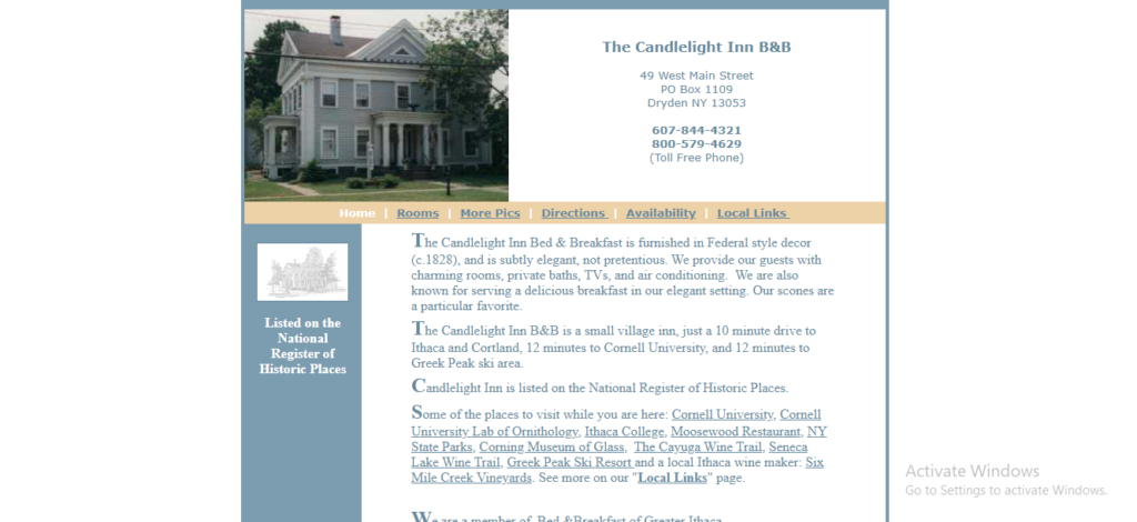 The Candlelight Inn B&B is a small village inn, just a 10 minute drive to Ithaca and Cortland, 12 minutes to Cornell University, and 12 minutes to Greek Peak ski area.