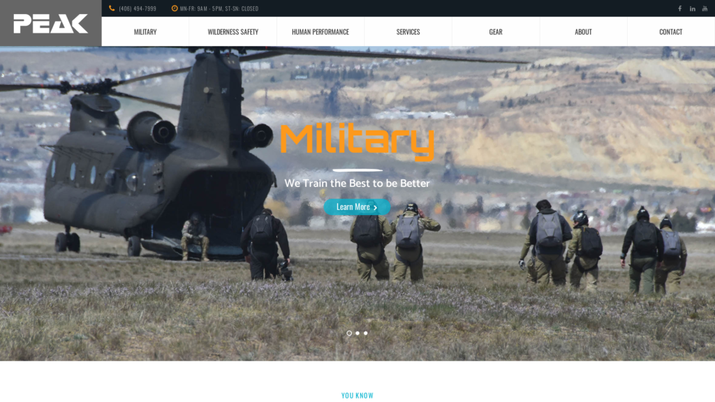 The Peak Inc., a Service-Disabled Veteran-Owned Small Business, established in 2005, has been enhancing the performance of military special operations units, elite law enforcement, wilderness professionals, and outdoor enthusiasts in the environments where performance matters. If you work or play outdoors, we equip you with the skills to excel in any environment.