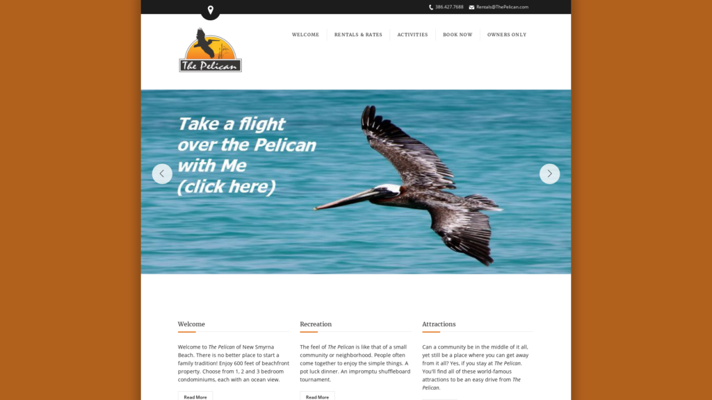 There is no better place to start a family tradition! Enjoy 600 feet of beachfront property. Dive into two huge oceanfront swimming pools. Choose from 1, 2, and 3 bedroom condominiums, each with an ocean view. The Pelican features on-site management and our office staff is here to assist you day or night.