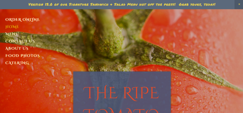 The Ripe Tomato deli opened in January of 2003. Originally located in the town of Morris, CT., The Deli’s second location opened in Litchfield in August of 2009. The Deli is known for their risqué sense of humor when coming up with menu names and our daily specials because in the words of the original owner, “The only serious things about breakfast and lunch should be the quality of food and customer service.