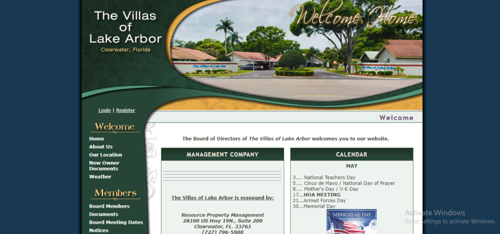 Our community boasts a location just minutes away from shopping, restaurants, churches and beautiful beaches. The community offers a beautiful lakefront swimming pool and picnic area where residents can enjoy an active adult lifestyle. The fishing dock and lake offer a tranquil area to relax and enjoy the sunshine. The Villas of Lake Arbor is a pet friendly community permitting one (1) dog or one (1) cat or other domestic animal weighing not more than twenty five (25) pounds to be kept within each living unit upon written approval of the Association. EXCEPTION…No pets are permitted in the twelve (12) condo units located at 2040 Lakeview Dr.