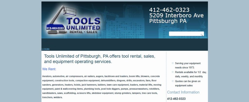 Aerators, automotive, air compressors, air nailers, augers, backhoes and loaders, boom lifts, blowers, concrete equipment, construction tools, compaction equipment, dehumidifiers, dingoes, drills, excavators, fans, floor sanders, generators, heaters, hoists, jack hammers, ladders, lawn care equipment, loaders, material lifts, moving equipment, paint & wallcovering items, plumbing tools, post hole diggers, pumps, pressurewashers, rototillers, sandblasters, saws, scaffolding, scissors lifts, skidsteer equipment, stump grinders, tampers, tree care tools, trenchers, welders.