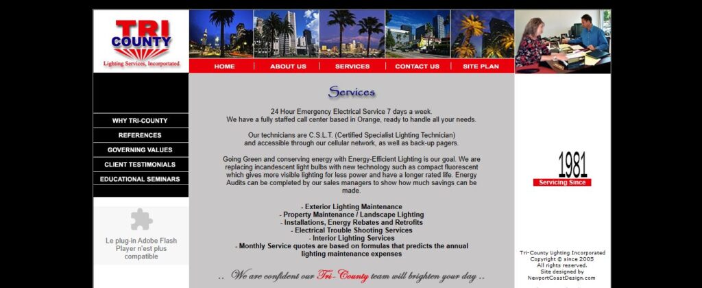 Tri-County Lighting is a full service lighting company, we cover all aspects related to lighting and electrical services. We have been in business since 1981 and have many years of experience working with Property Management Companies. We are dedicated to providing prompt, professional lighting maintenance and electrical solutions to the business community throughout California.