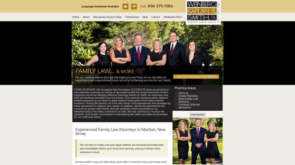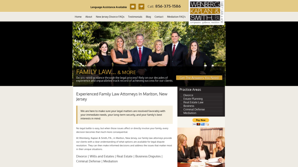 Weinberg, Kaplan & Smith, P.A., offers quality representation from experienced attorneys in divorce, estates, business and criminal law. Call 856-375-1586.