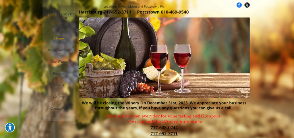 Home » Listings » WEST HANOVER WINERY January 9, 2024 WEST HANOVER WINERY Other We are now open everyday for wine tasting and Groupons. Add to favourites Report abuse Contact details Please complete the captcha field below to view phone number and/or email address. http://westhanoverwineryinc.com WHOIS Created on: 03/04/2014, 18:25PM Last Updated on: 02/12/2026, 03:41AM Expires on: 03/04/2027, 18:25PM Registrant: Organization: Domains By Proxy, LLC State: Arizona Country: UNITED STATES Country Code: US Domain Name: westhanoverwineryinc.com Name Servers: Host Names: ara.ns.cloudflare.com, sri.ns.cloudflare.com Audit: Created on: 04/15/2026, 11:06AM Last Updated on: 04/15/2026, 11:06AM Registrar: GoDaddy.com, LLC Registrar IANAID: 146 WHOIS Server: https://rdap.godaddy.com/v1/ Contact Email: abuse@godaddy.com