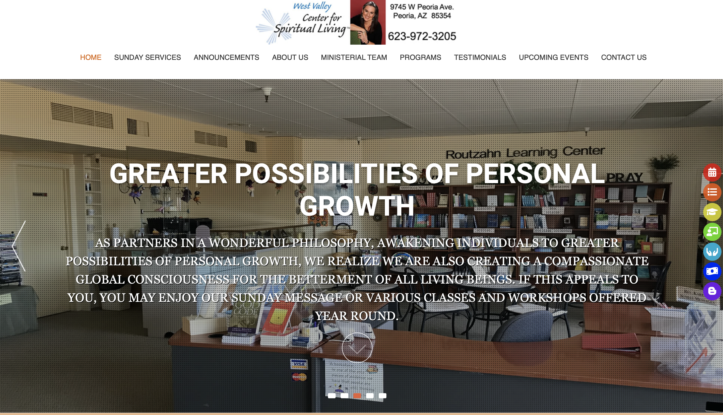 West Valley Center for Spiritual Living is a vibrant, Science of Mind Community teaching powerful spiritual truths for successful living. We are a philosophy, a faith and a positive way of life that encourages spiritual exploration, personal growth and personal experience of God. We consider ourselves to be an open, loving community where people of all faiths are embraced.