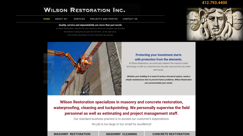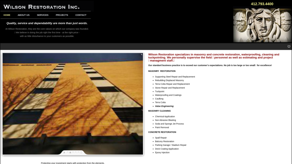 Wilson Restoration Company - masonry and concrete restoration, waterproofing, cleaning and tuckpointing.
