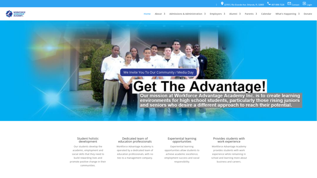 Workforce Advantage Academy is an Orange County Public Charter School that has only 11th and 12th-grade students. Its major focus is preparing students for graduation from high school and providing them with work experience through paid internship opportunities that prepare them for the world of work. Belinda Jones, principal of WAA, is, ultimately, responsible for the overall academic performance of the students at WAA.