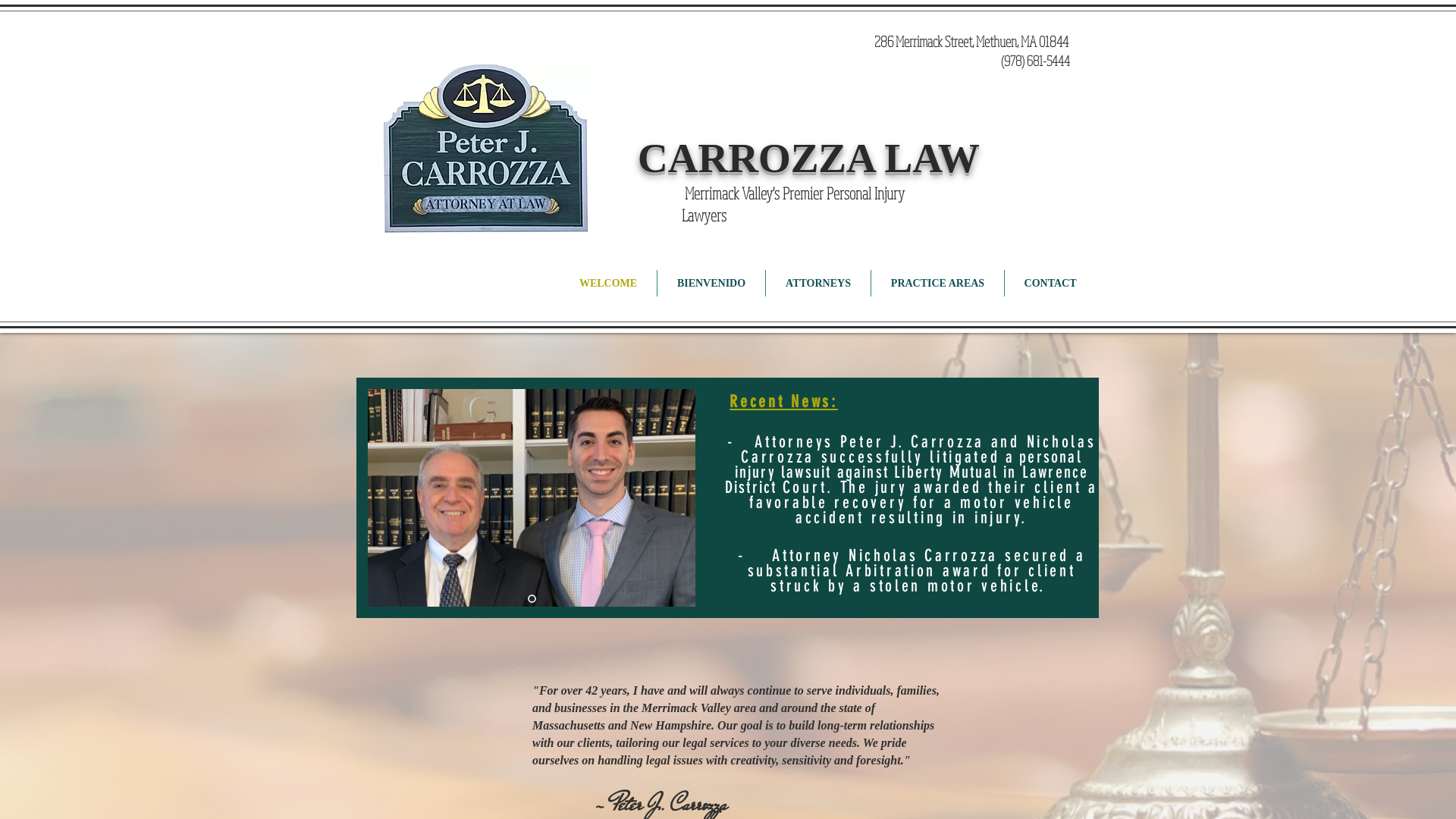 Carrozza Law: Attorneys Peter J. Carrozza & Attorney Nicholas M. Carrozza engaging primarily in Personal Injury and Civil Litigation "For over 39 years, I have...
