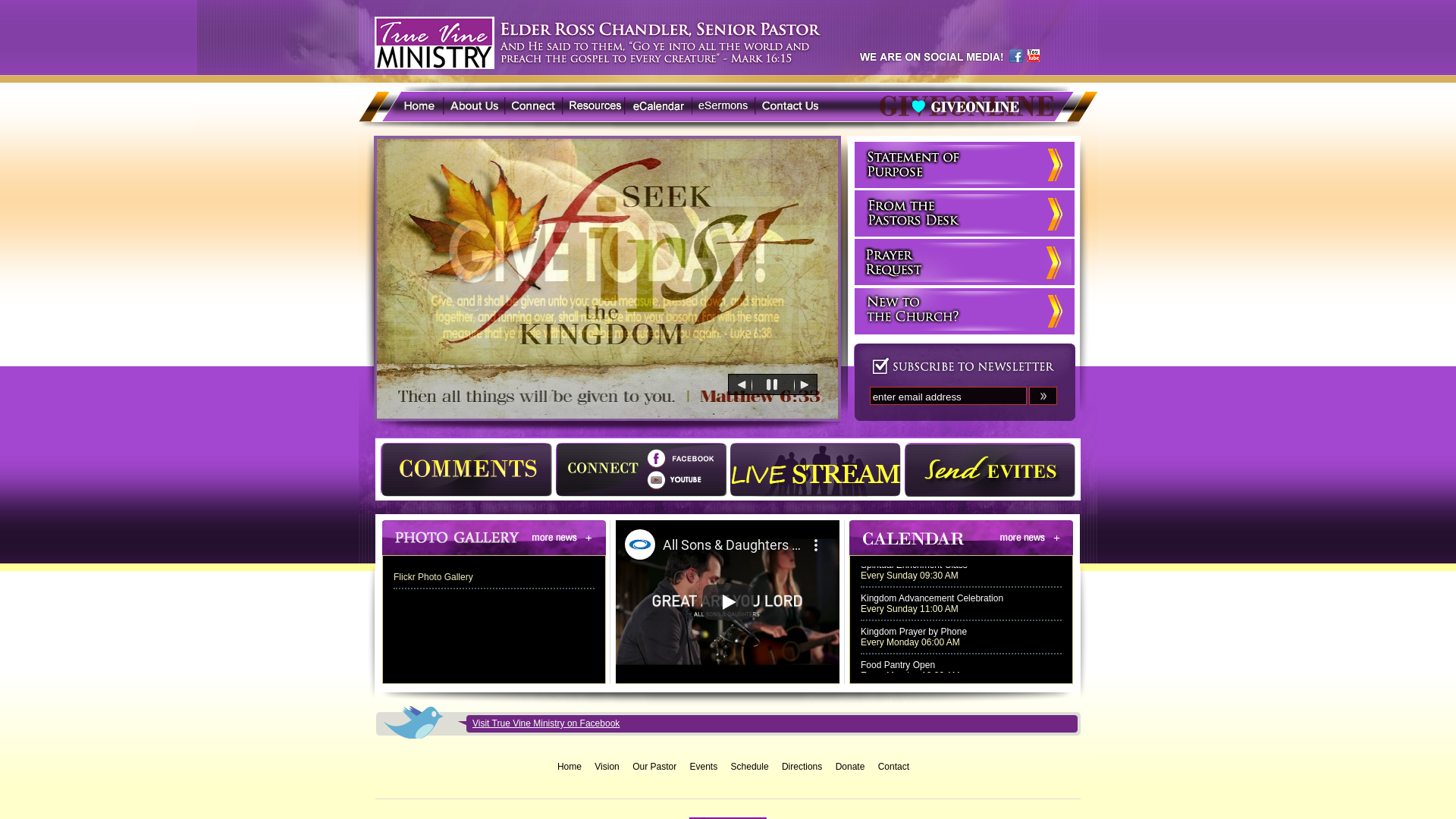 Our Vision is to stay connected to the True Vine and be a place where the voice of God can be heard clearly and concisely;...
